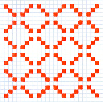 Manch ein/-e kleinfacee/-r Mathekünstler/-in hat jedoch noch Schwierigkeiten, in einem vorgegebenen Raster Abzählmuster zu erkennen oder eine gleichbleibende, sich wiederholende Regel beliebig oft und fehlerfrei anzuwenden. Hierfür nutze ich ein weiteres Kreativspiel, bei dem gleichzeitig noch die Zahlvorstellungen vertieft werden.