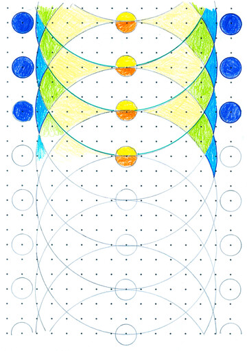 Lisa musste sich ganz schön anstrengen, bis sie den Zirkel sogar mit einer Hand benutzen konnte. Aus den Kreisbildern wurden Zirkelbilder mit immer komplizierteren Mustern. Nun war sie nicht mehr zu bremsen: Jede Übungsstunde endete mit einer neuen Zirkelbildidee.