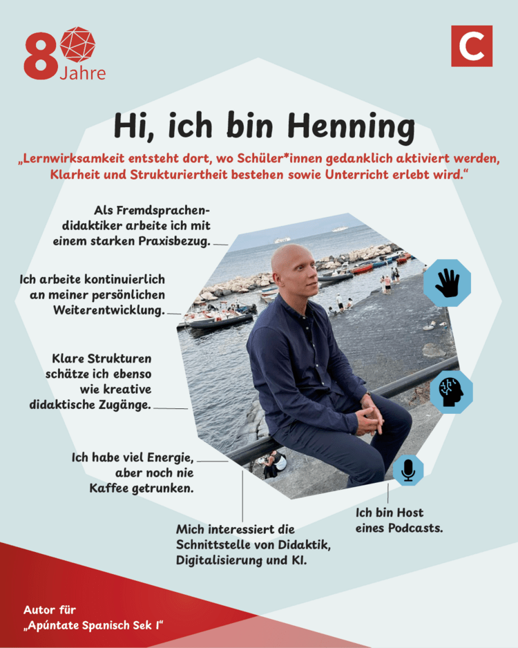 Seit acht Jahrzehnten öffnen wir Türen zu Wissen und Bildung. Zum Jubiläum laden wir Sie ein, neue Perspektiven zu erkunden: Der bewegliche 80-seitige Polygon steht für die vielen Facetten unserer Lernwelten. Drehen, entdecken und erleben, wie Cornelsen seit 1946 Bildung gestaltet.
