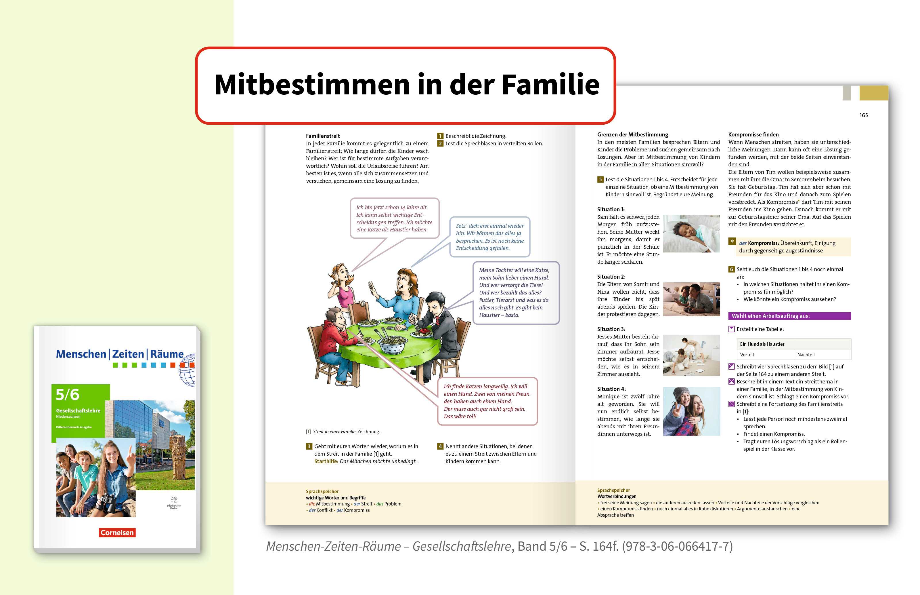 Die Bedeutung von demokratischem Handeln wird in unseren Schulbüchern von Beginn an altersgerecht und motivierend vermittelt. Vielfältige Themen regen dazu an, Demokratie aktiv mitzugestalten. In MZR lernen Schülerinnen und Schüler Kompromisse zu einem Streitthema in der Familie zu finden.