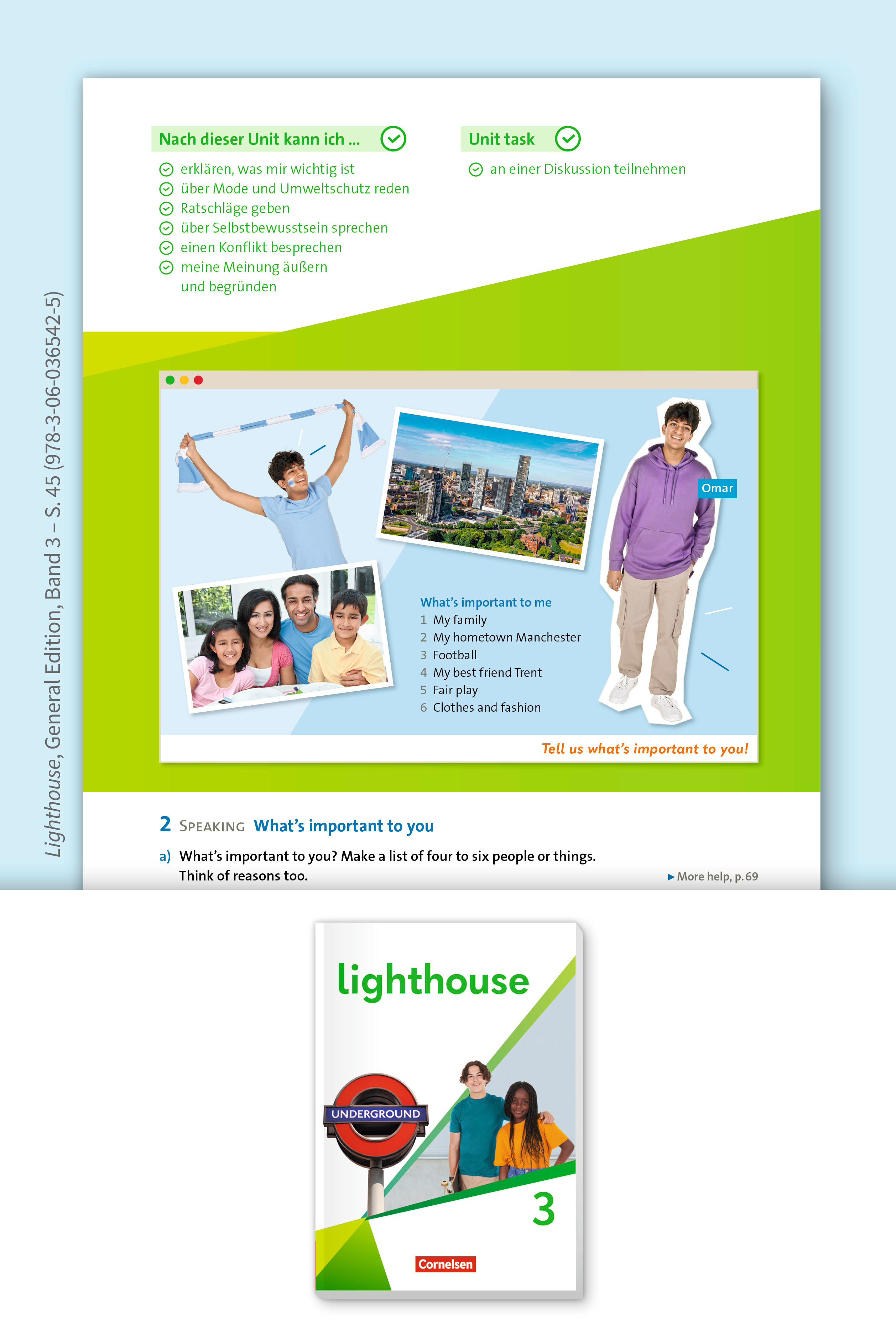 Wir machen unterschiedliche Lebensrealitäten sichtbar und zeigen Migration als selbstverständlichen Teil unserer Gesellschaft: Lighthouse -Lehrwerkprotagonist Omar ist aus Manchester, seine Eltern sind in Bangladesch geboren.