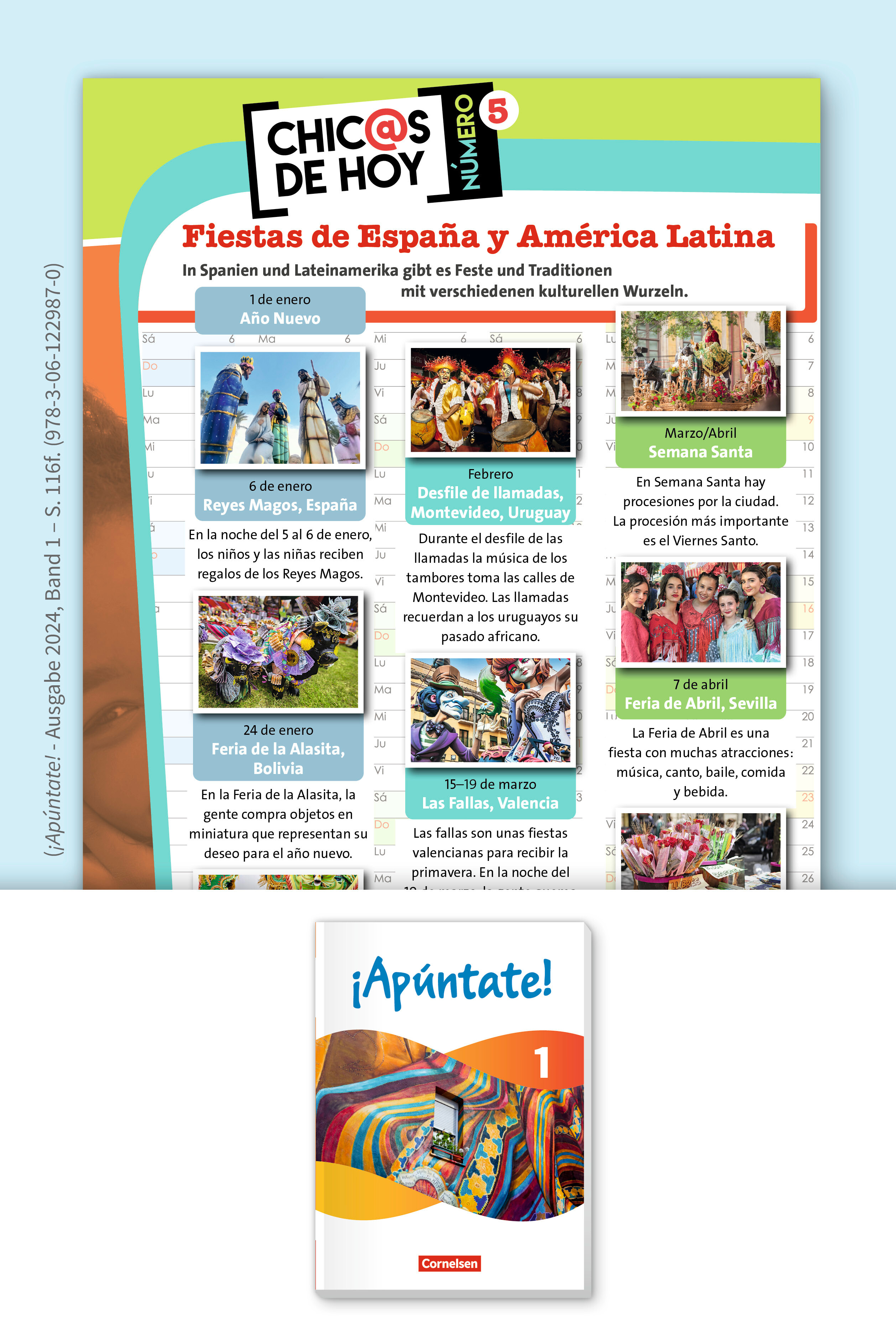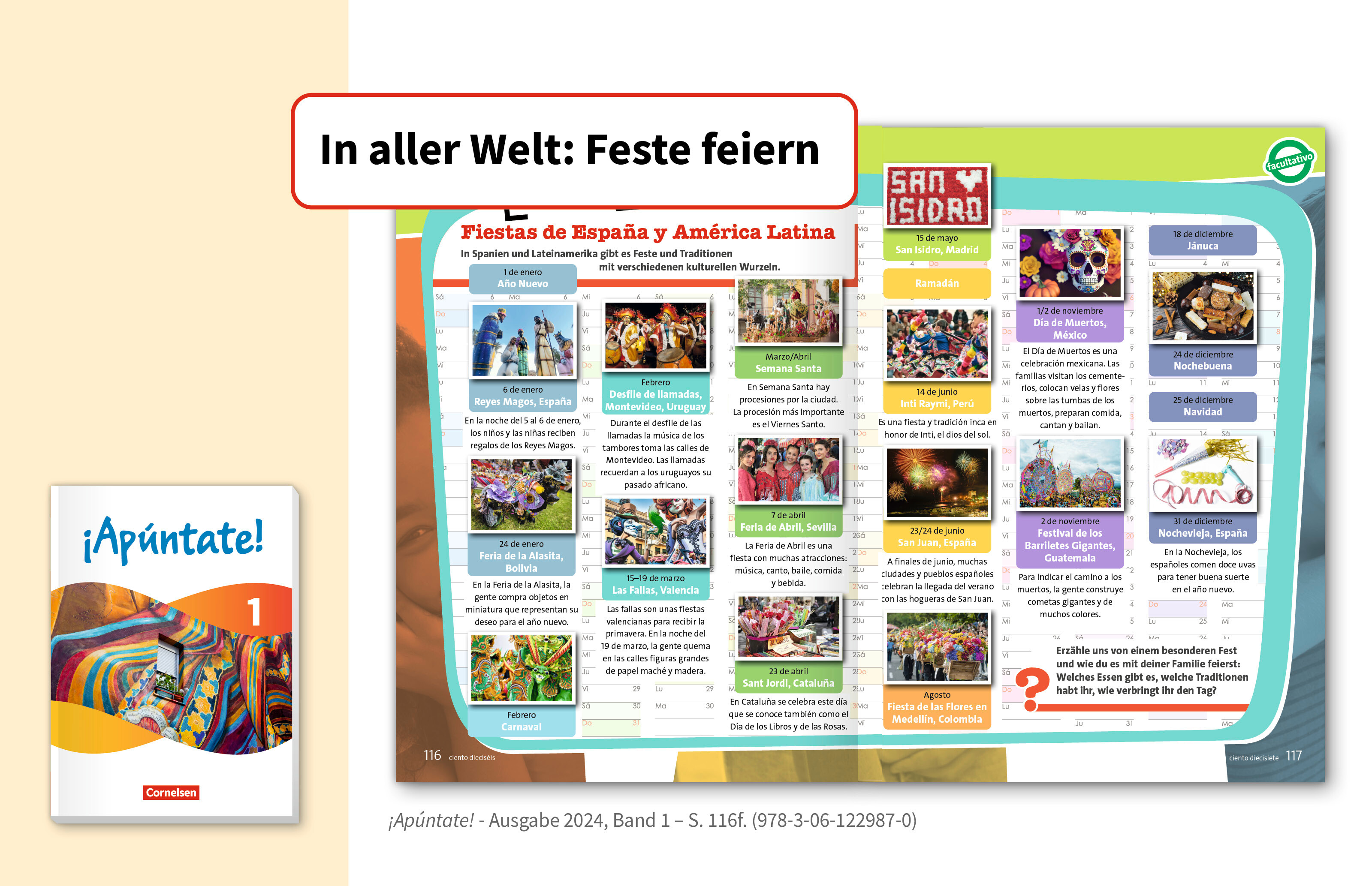 Im Feiertagskalender in ¡Apúntate! werden christliche, muslimische und jüdische Feiertage angegeben sowie lateinamerikanische Feste, die indigenen Ursprungs sind.