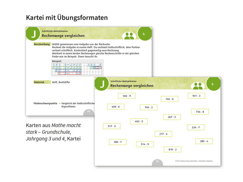 Die Kartei enthält Übungsformate zur Förderung, die auf die Aufgaben im Schülerheft abgestimmt sind.