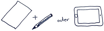 - ein Blatt Papier + Stift(e) oder ein Tablet