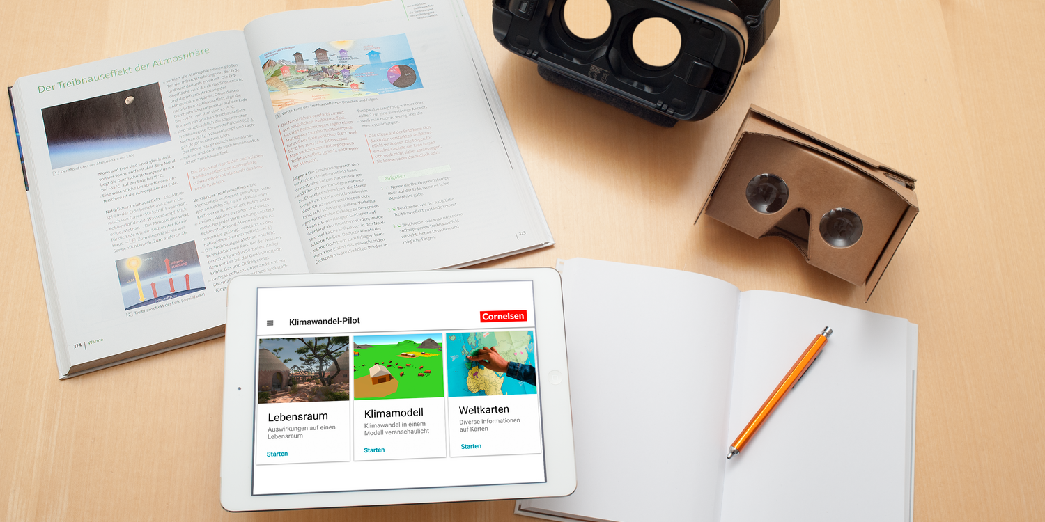 Cornelsen hat die Virtual-Reality-App entwickelt, um Jugendlichen ab der 7. Klasse ein „entdeckendes Lernen“ zu ermöglichen. So wird Wissen besser verankert. „Virtual Reality ist nicht nur ein großer Motivationsschub. Die plastische Darstellung hilft Schülerinnen und Schülern, die abstrakten und komplexen Zusammenhänge zu verstehen“, berichtet Learning Designerin Jana Kunze von Schulklassen in NRW, die die VR-App bereits erprobt haben. Der Verlag ergänzt das Digitalangebot mit einem gedruckten Arbeitsheft und detaillierten Unterrichtsvorschlägen für Lehrkräfte. Die App eignet sich fachübergreifend für den Unterricht in Geografie, Erdkunde, Politik oder den Naturwissenschaften.