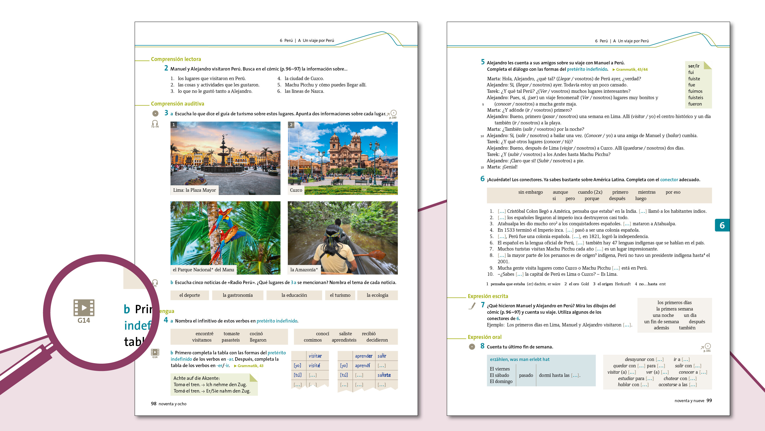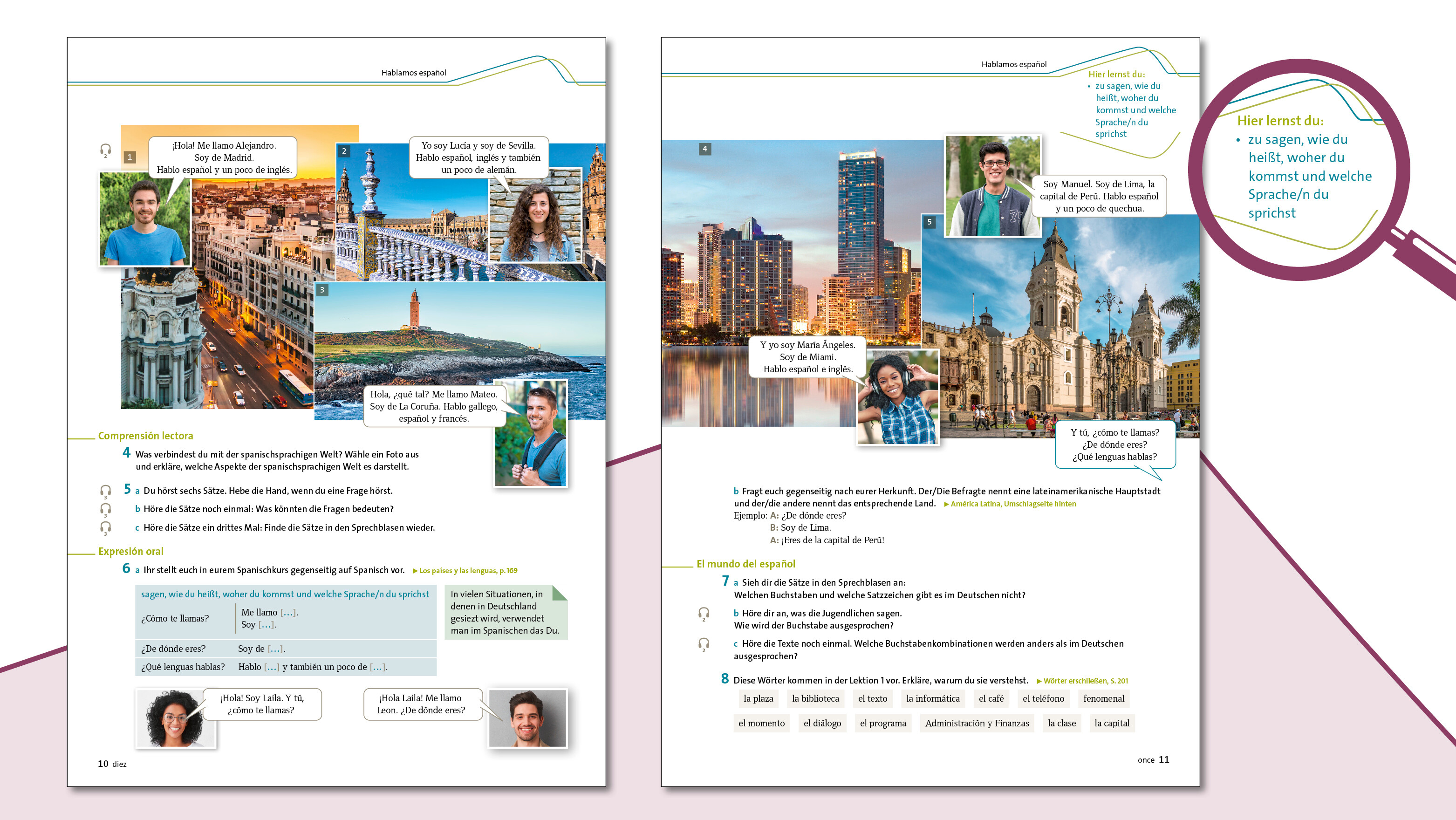 - Puntos socioculturales: Ihre Lernenden eignen sich Besonderheiten der spanischsprachigen Geschäftswelt und -kultur an oder setzen sich mit gesellschaftlichen Aspekten auseinander.