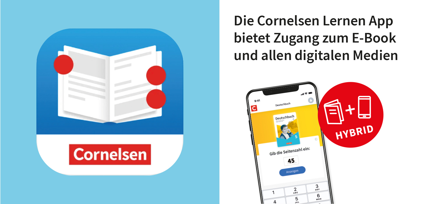Einfach die kostenlose Cornelsen Lernen App herunterladen – im App Store oder bei Google Play. App öffnen (wahlweise mit Registrierung oder NEU: ohne Registrierung) und darin das digitale Materialpaket zum Lehrwerk auswählen, Seitenzahl eingeben und die zusätzlichen Inhalte entdecken.