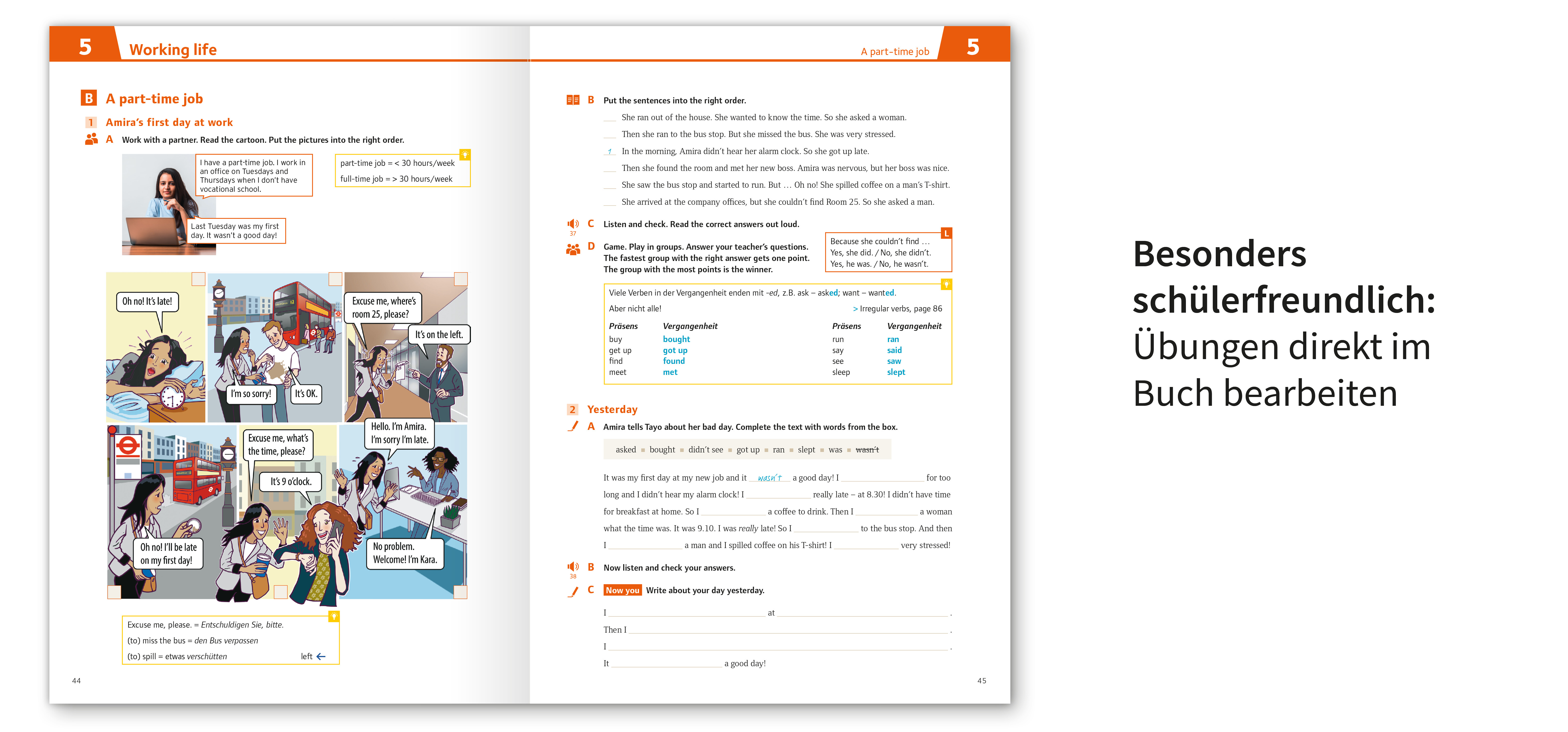 In Do it! A1/A2 trainieren Ihre Schüler/innen ihre sprachlichen Fertigkeiten mit abwechslungsreichen und lebensnahen Themen. Auf der Doppelseite Working towards work entwickeln sie gezielt ein tieferes Verständnis des englischen Sprachgebrauchs in beruflichen Kontexten.