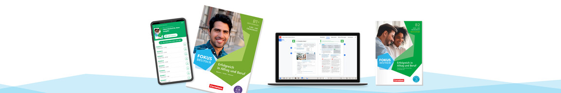 Die Bände der Reihe Fokus Deutsch stehen auf der Lernplattform BlinkLearning mit E-Book, interaktivem Übungsbuchteil, allen Medien und Kursverwaltung zur Verfügung. Die Einbindung der digitalen Ausgabe in Ihre eigene Lernplattform ist als LTI-Lizenz ebenfalls unkompliziert möglich. Die Bände B1+ und B2 der Lehrwerksreihe sind vom BAMF als interaktive LMS-Version für den Einsatz in Berufssprachkursen zugelassen.