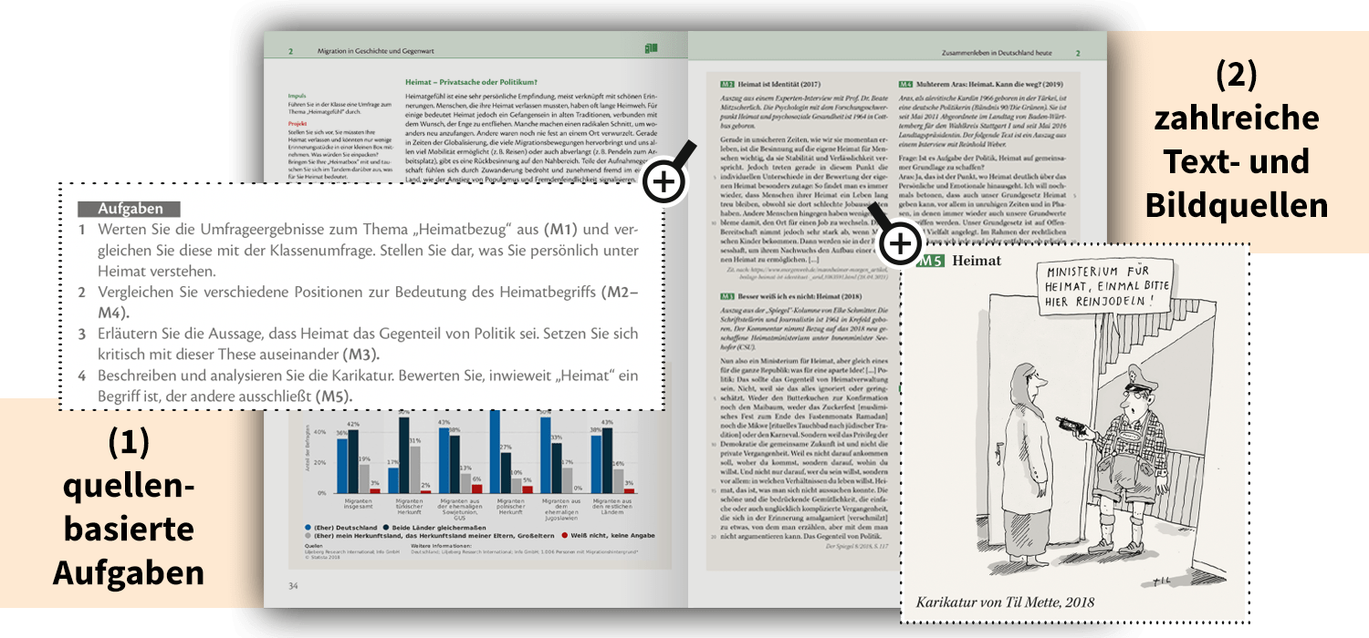 Die Basis des Unterrichts: Ihre Schülerinnen und Schüler lernen, vielfältige Quellen zu analysieren und sich dabei mit aktuellen Fragestellungen auseinanderzusetzen. In jedem Kapitel sorgen Methodenseiten dafür, dass Ihre Lernenden die Arbeitsschritte systematisch üben. Zusätzlich unterstützen sie detaillierte Leitfäden dabei, die Quellenanalysen selbstständig durchzuführen.