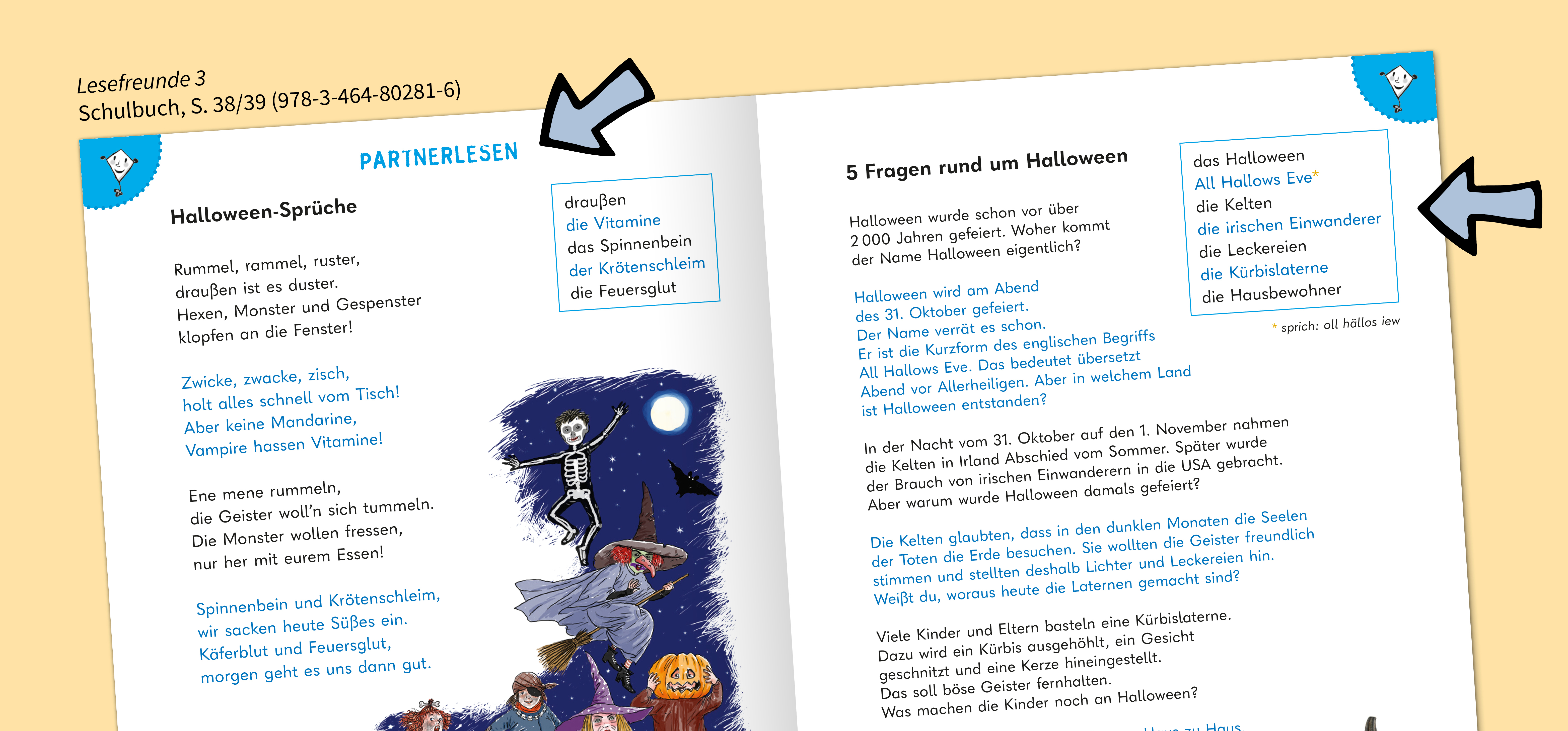 Um die Leseflüssigkeit systematisch und effektiv zu entwickeln, findet sich in jedem Kapitel eine Doppelseite zum Partnerlesen. Die Arbeit erfolgt auf der Grundlage bewährter kooperativer Lautleseverfahren zum Training der Leseflüssigkeit, die bei regelmäßiger Anwendung hohe Effekte erzielen.
