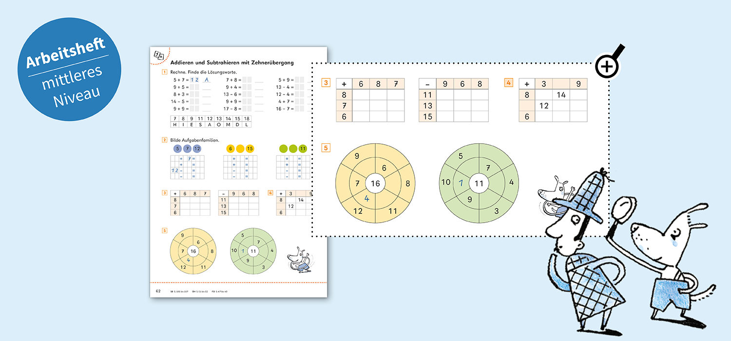 - Erreichen der Lernziele aller Kinder dank seitengleichem Förderheft und Detektivblock für schneller Lernende