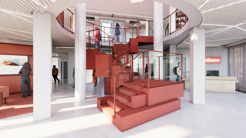Damit die Arbeitsräume der modernen Organisationsform und Arbeitskultur von Cornelsen entsprechen, wird der Berliner Verlagssitz vollständig umgebaut. Eine Revitalisierung der Gebäude ermöglicht hybrides Arbeiten in Vollpräsenz oder mobil an mehreren Orten. Die Planung berücksichtigt die verschiedenen Anforderungen und Arbeitsweisen der Mitarbeitenden und schafft Raum für Fokussierung, Kommunikation, Zusammenarbeit und Begegnung. Das Projekt „New Space“ gibt dem Cornelsen Teamspirit einen Raum.